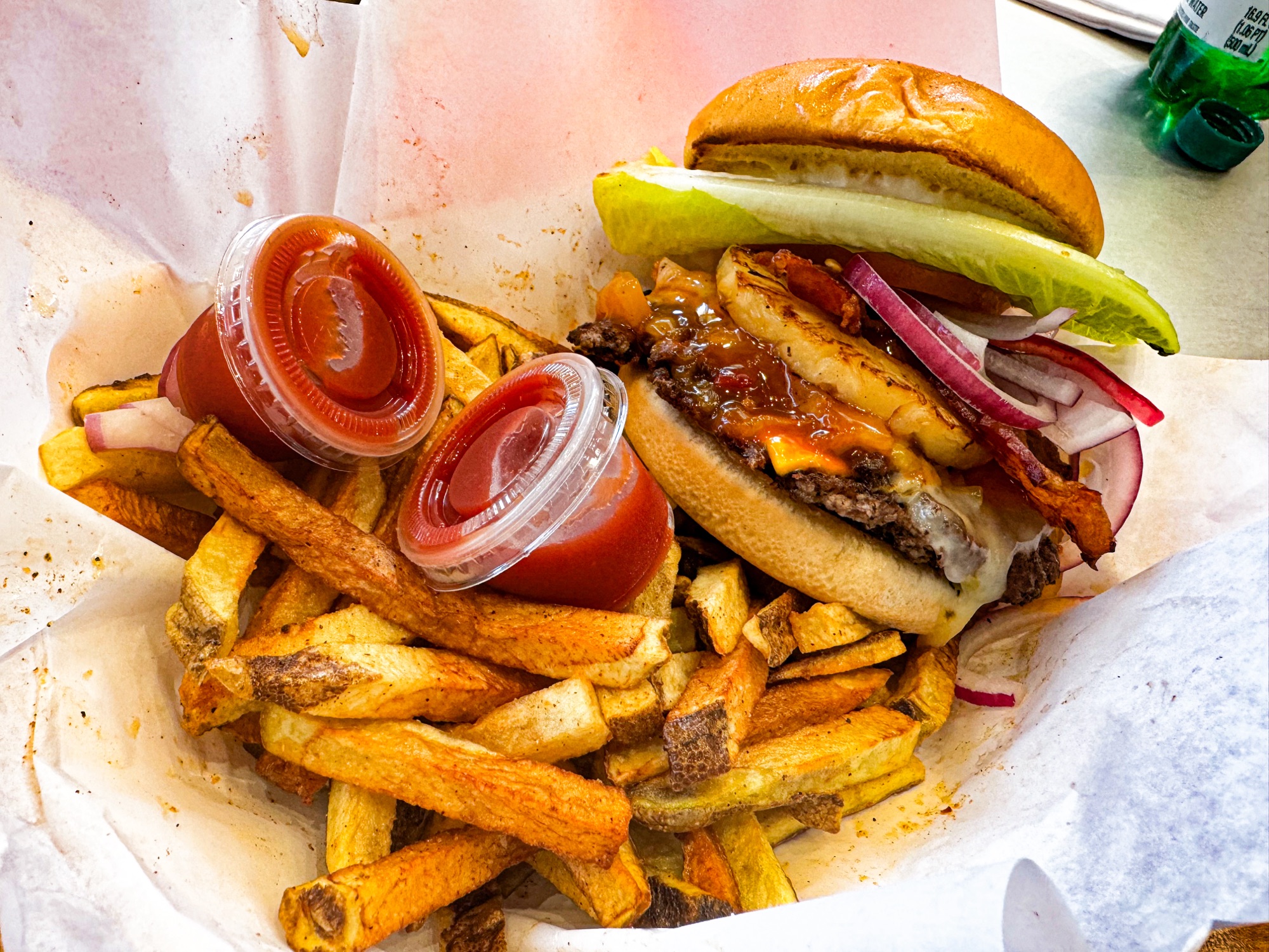 What makes this burger truly special is how it reimagines the classic Hawaiian burger for the Tucson palate. By incorporating Southwestern elements, Ol’ Pot Hole has breathed new life into this tropical favorite. It’s a testament to the creative fusion at work in this kitchen, bridging the gap between island comfort food and desert-inspired cuisine.